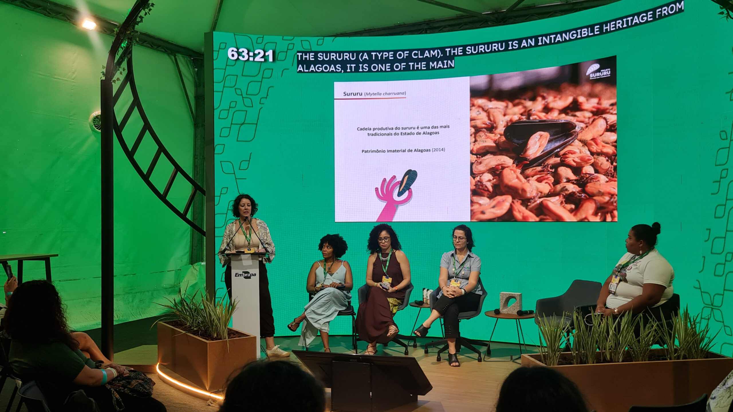 Durante a COP30, a iniciativa Sururu: Conchas que Transformam marcou presença em diversas mesas mobilizadas pelo Ministério da Pesca e Aquicultura e pela Casa Futura.  Os painéis promoveram a interseção entre gênero e meio ambiente, buscando dar visibilidade ao trabalho realizado por mulheres de diferentes contextos que atuam para adaptação e mitigação da crise climática e, no caso da iniciativa, deu visibilidade a como estratégias inovadoras podem promover alternativa de renda e melhora da qualidade de vida nos territórios.