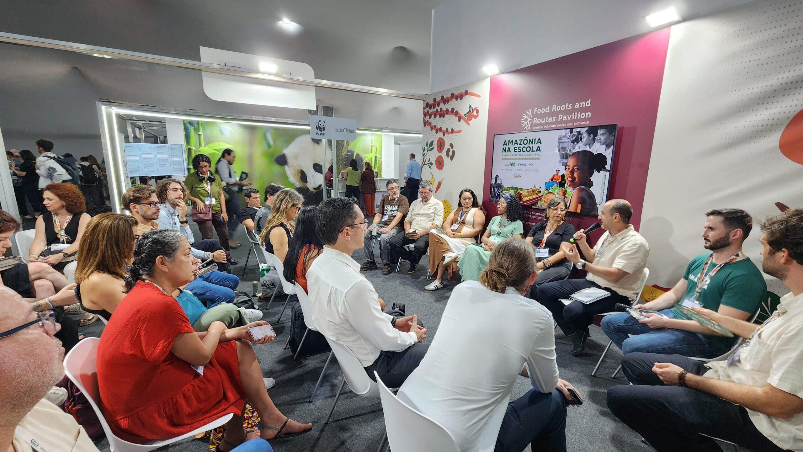Na Green Zone, o encontro reuniu a rede de parceiros que compõem o arranjo institucional e contou com a assinatura simbólica do projeto. Estiveram presentes na mesa e fazem parte do arranjo: Conexsus (Planos de Negócio das Organizações); Projeto Saúde e Alegria (PSA) – ATER no Tapajós (lidera ATER em  Santarém e Belterra); Fundação Viver, Produzir e Preservar (FVPP) – ATER na Transamazônica (vai liderar ATER em alguns territórios, como Altamira, Medicilândia, Anapu e São Félix do Xingu).